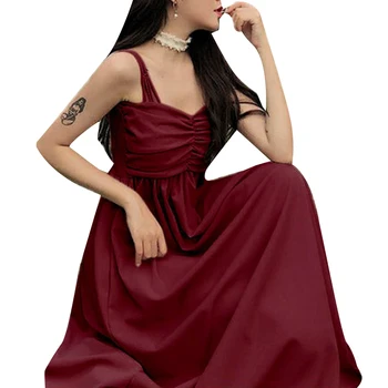 Summer Women's Dress Midi Wrap Chest Bow High Waist No-Sleeve Girl Gifts Pleated Dinner Party